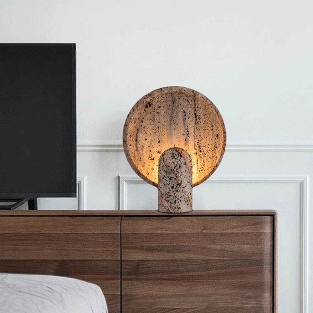 【تصميم بسيط】مصباح ترافرتين دائري لطيف، يجعل الترافرتين الدائري المصباح أنيقًا للغاية وكلاسيكيًا ورائعًا. يمكن أن يكون مصباح الطاولة الدائري هدية جيدة.
